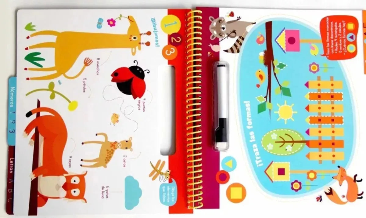 Un excelente libro para que los pequeños aprendan y repasen letras, números y formas, de una manera fácil y muy didáctica. ¡Podrán hacerlo una y otra vez!
